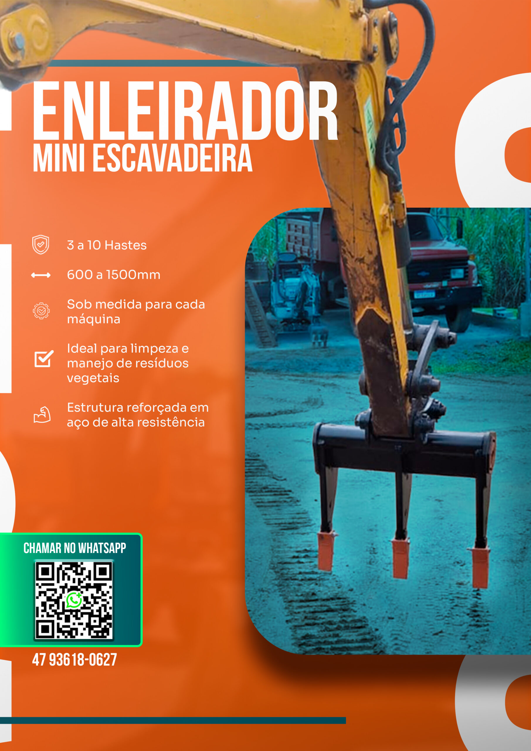 O Enleirador MK Engenharia foi desenvolvido para oferecer alto desempenho na organização e enleiramento de resíduos vegetais, garantindo velocidade, eficiência e baixo custo operacional em áreas agrícolas, reflorestamentos e manutenção de faixas de servidão.