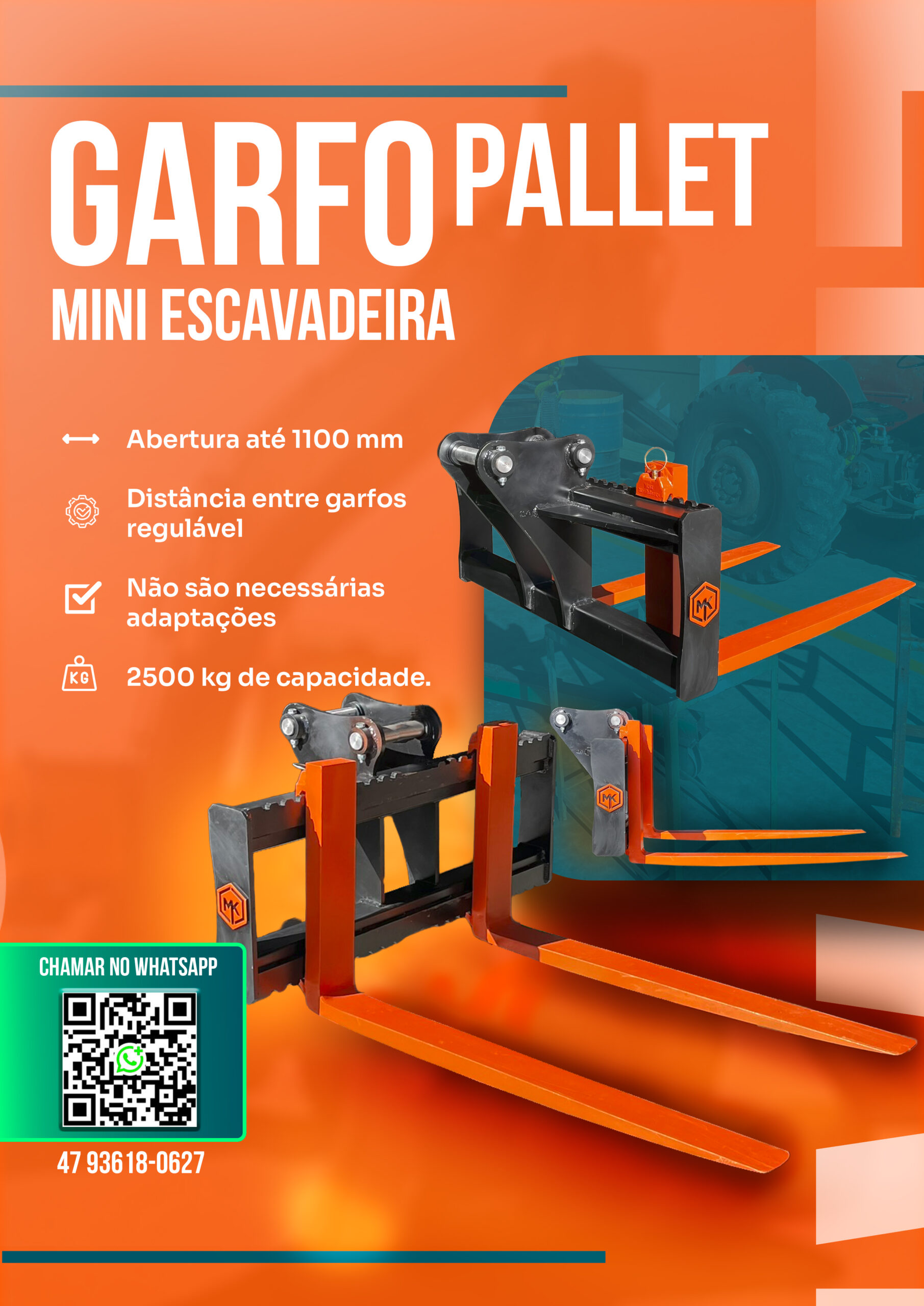 O Garfo Pallet MK Engenharia transforma sua escavadeira em uma máquina versátil de movimentação e transporte de cargas, ideal para uso em obras, pátios industriais, fazendas e armazéns. Projetado para elevar e deslocar pallets, caixas e materiais diversos com segurança e eficiência, ele combina força estrutural, precisão e praticidade no acoplamento.